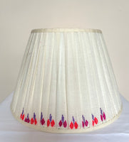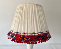 Each one is hand-embroidered, and hand woven which allows for the most beautiful texture when light floods through. These are perfect for a bedside table, a small table lamp or wall light.